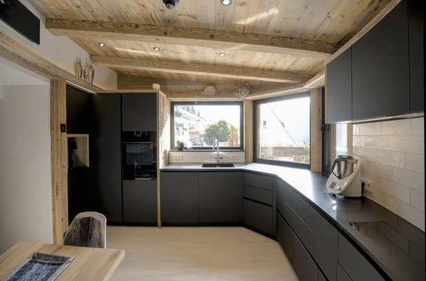 Küche in modernem matt schwarz mit Griffleisten