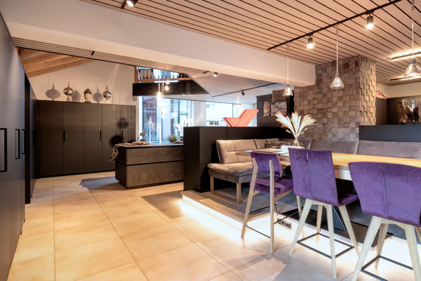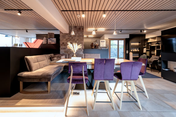 In unserem Showroom von Raumsinne Huber in Kappl Dorf gestalten wir Ihre Räume neu. Gemeinsam wählen wir die perfekten Materialien und Farben